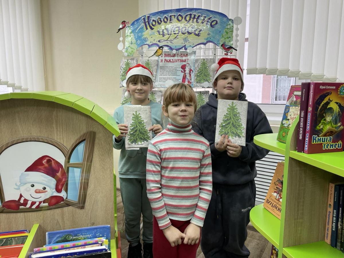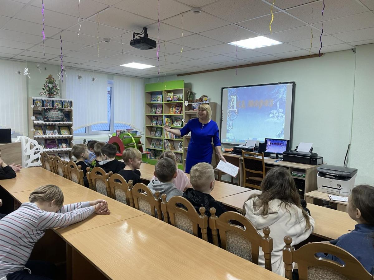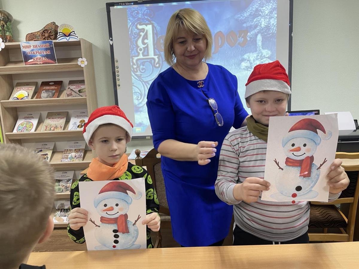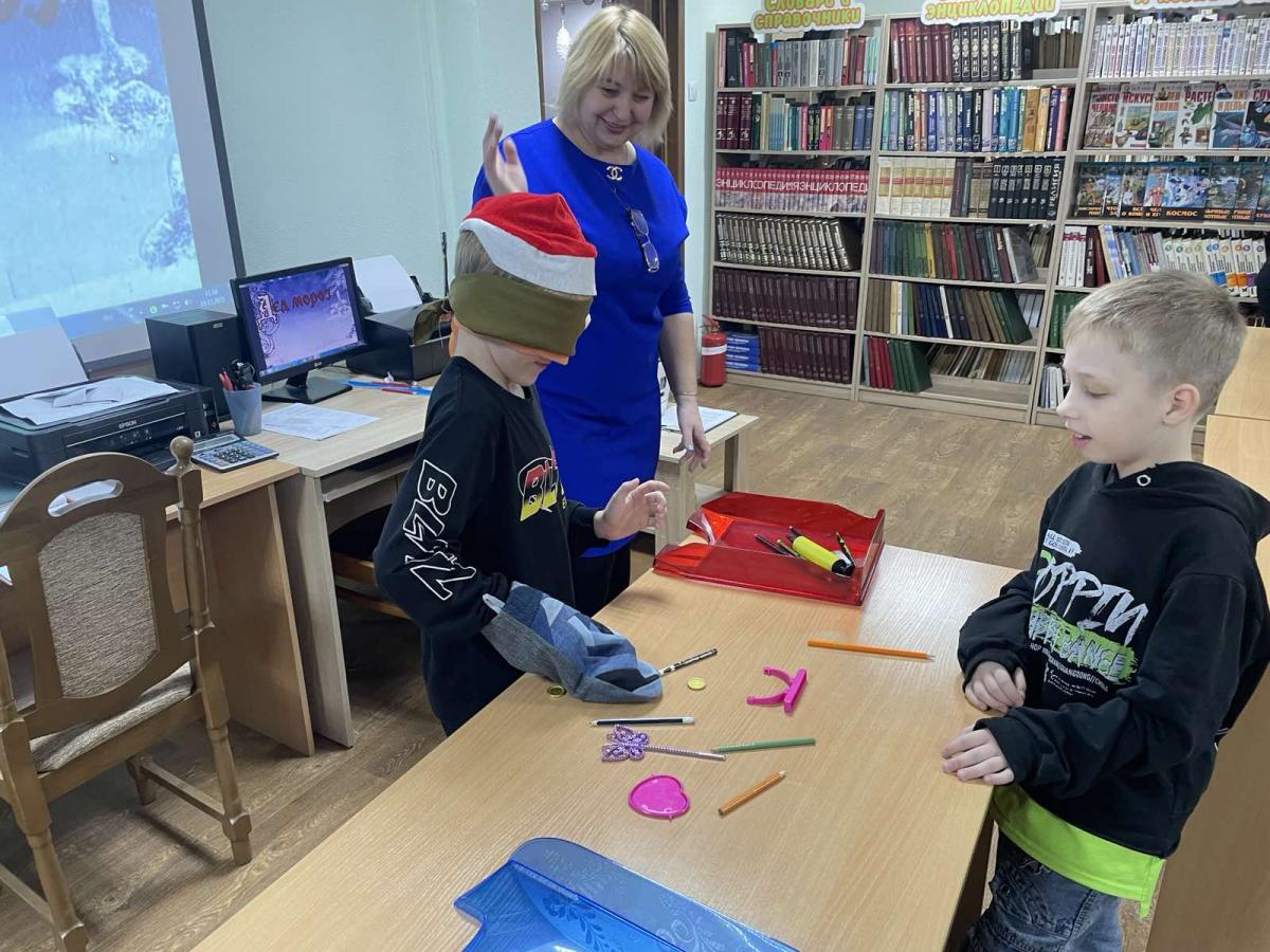 Ребята отгадывали новогодние загадки, отвечали на вопросы викторины по зимним сказкам. С большим азартом и удовольствием участвовали в конкурсах: ”Ежовые рукавички“, ”Наряди Снеговика“, ”Дыхание зимы“.   А также познакомились с зимними сказками, стихами, которые были представлены на книжной выставке ”Хорошо, что каждый год к нам приходит Новый год!“.